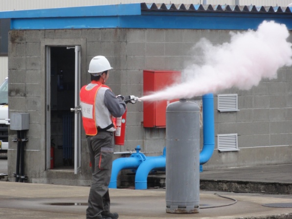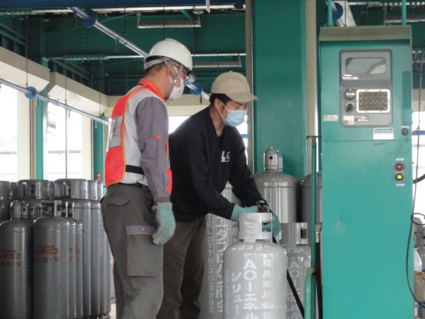 本訓練は2011年3月に発生した東日本大震災の教訓を踏まえ、大規模災害発生時に被災地域に対し、LPガスを安定的に供給できる体制を構築することを目的とし、国の補助を受けて福井県内7ヶ所で整備を進め、災害時を想定して行う中核充填所の訓練です。