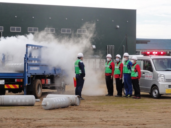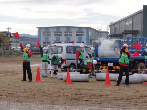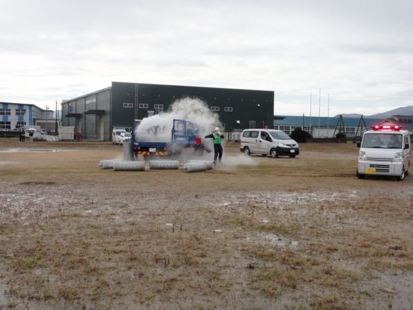 この福井県総合防災訓練に(一社)福井県LPガス協会、福井県高圧ガス地域防災協議会、(一社)日本コミュニティーガス協会近畿支部福井県防災会と共同で参加し、「LPガス漏洩時の緊急出動・応急措置訓練」を実施しました。