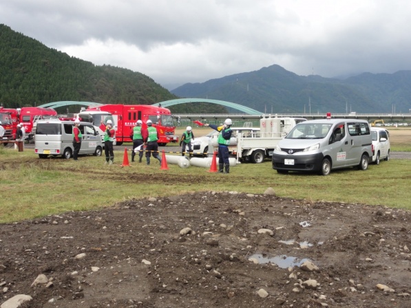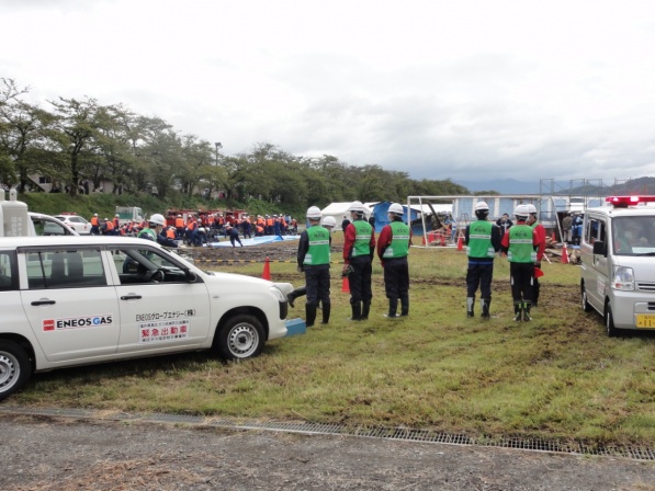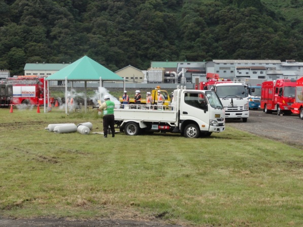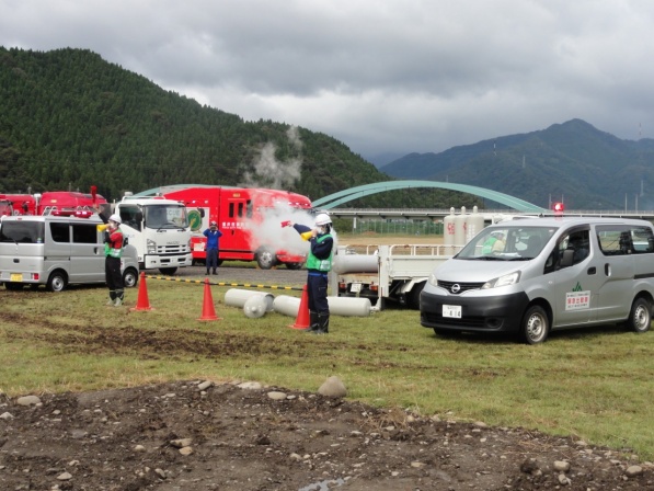 この福井県総合防災訓練に(一社)福井県LPガス協会、福井県高圧ガス地域防災協議会、(一社)日本コミュニティーガス協会近畿支部福井県防災会と共同で参加し、「LPガス漏洩時の緊急出動・応急措置訓練」を実施しました。