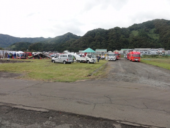 令和4年10月8日(土)に、福井県総合防災訓練が、災害基本法及び福井県地域防災計画に基づき、防災関係機関が協力して迅速・的確に応急対策が実施できることを目的として、勝山市の弁天緑地にて行われました。