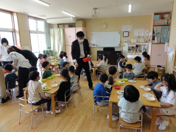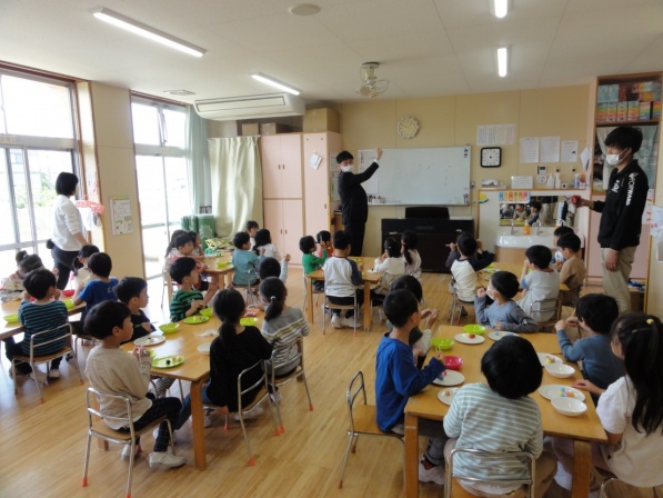 (一社)福井県LPガス協会・坂井支部では、家庭の炎を供給していることに関連して、保育園・幼稚園児を対象に「いただきます・ごちそうさま」をテーマとした食育活動を行っています。具体的には、箸の正しい使い方や「いただきます」と「ごちそうさま」の意味や大切さを伝え、健康な心身を養うお手伝いをしています。 今回は、5月12日(金)に坂井市の安田幼保園さまにおいて、年長児(35名)の皆さんを対象に実施させていただきました。
