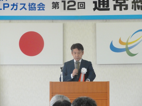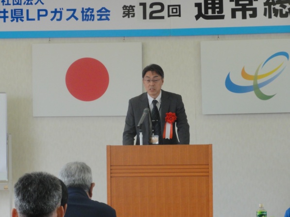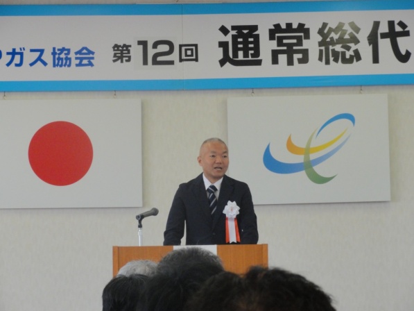 今年の元旦の地震で思いましたが、災害はいつ何時発生するか分かりません。福井県は人口の割に中核充填所が7カ所もあるというのが自慢でしたが、いざという時には役に立たない場合もあるということを痛感致しました。災害は日時を選んでくれません。やはり各需要家様で、何とか対処できる状態を1件でも多く作るということが我々の使命ではないでしょうか。そうすることによって必要なエネルギーとして未来永劫なくならない産業になると考えております。災害時に避難所になり得るすべての施設に、災害バルクやシリンダーでも構いませんので、設置されれば、中核充填所は必要ないということになります。皆様のお店を含め、より多くの災害バルクを普及していただくことをお願いして、開会の挨拶とさせていただきたい旨の挨拶がありました。